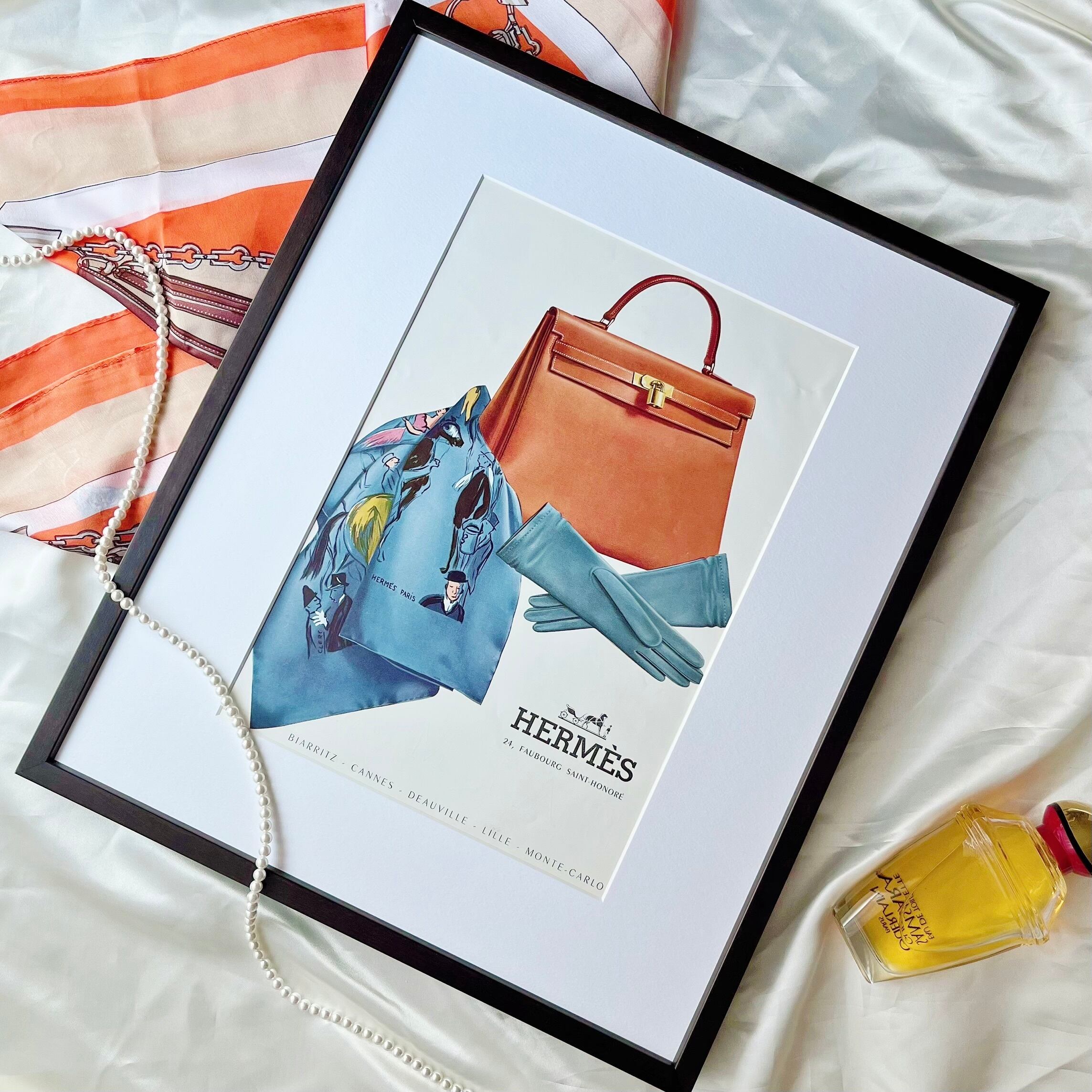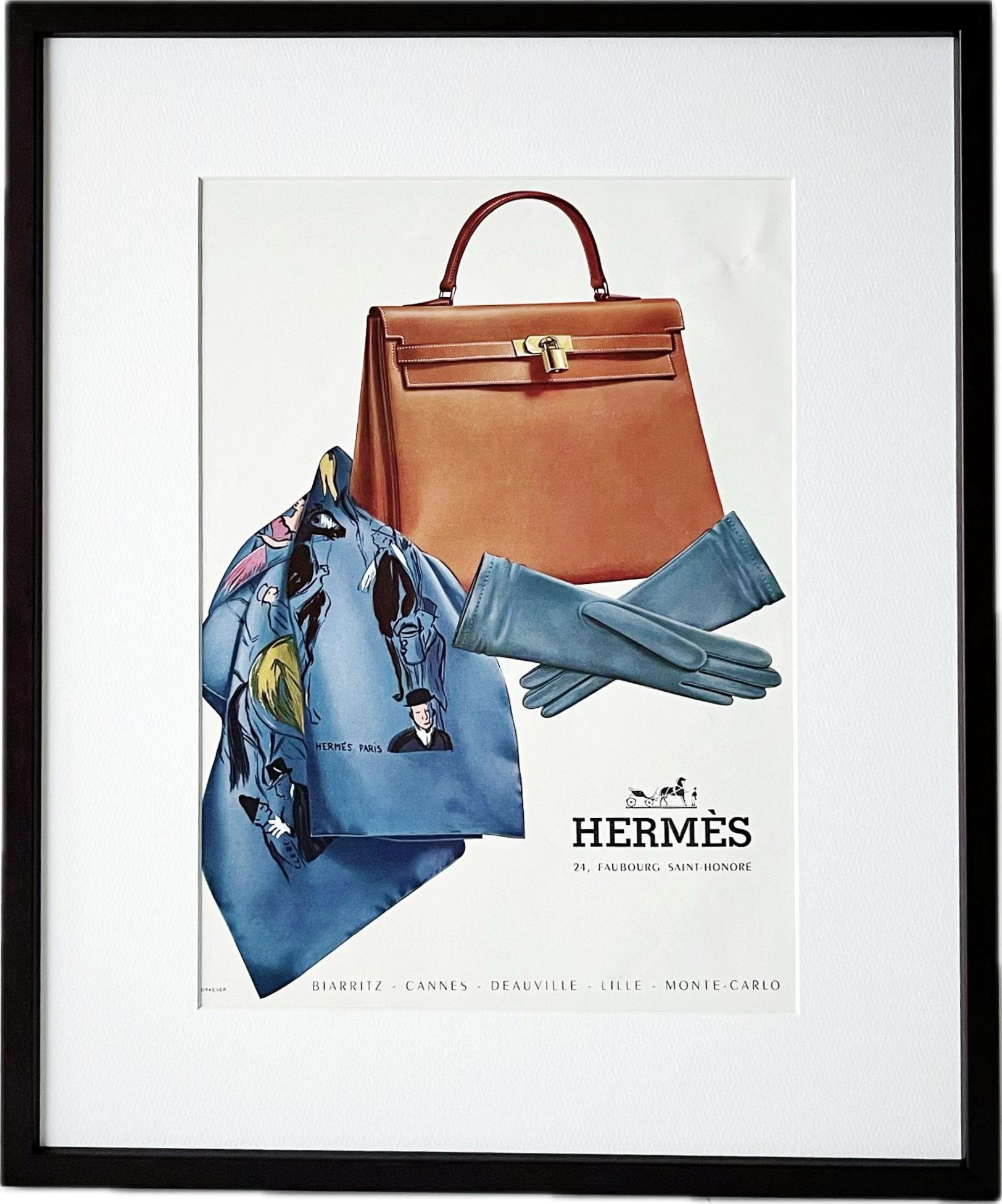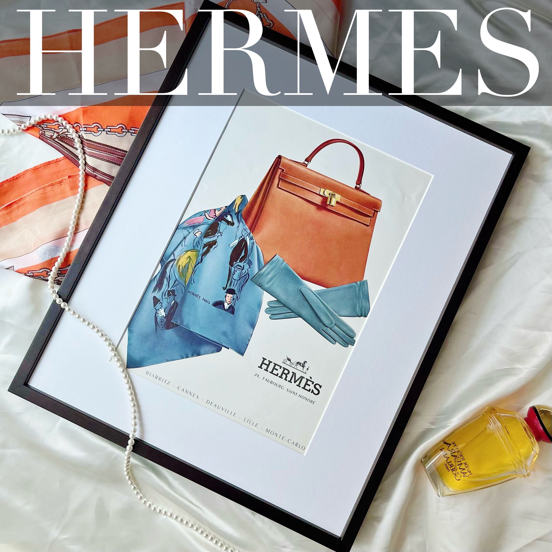 <入手困難!1950 広告> HERMES ポスター ヴィンテージ アートポスター フレーム付き 額縁 インテリア モダン おしゃれ かわいい 壁掛け ポップ レトロ ケリー