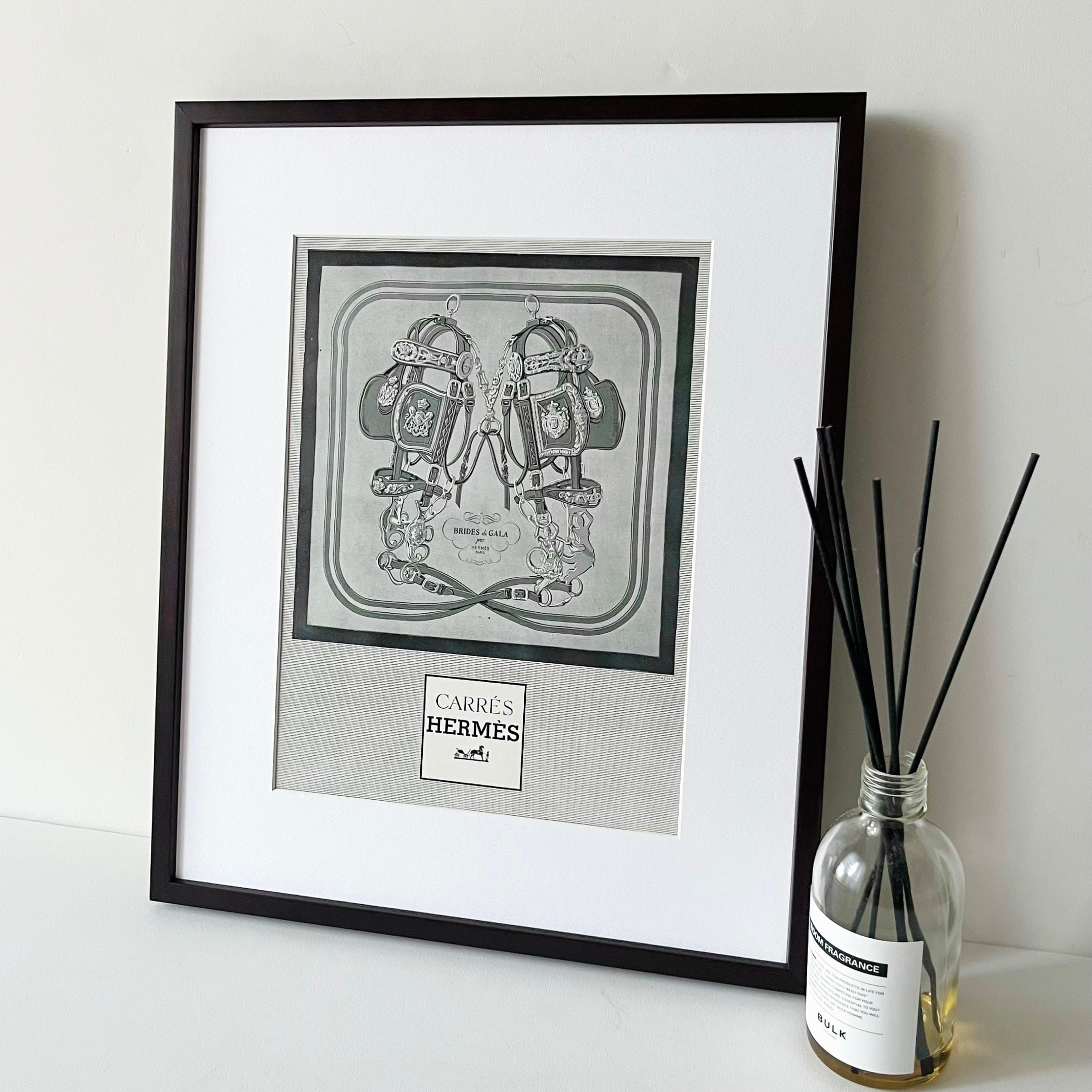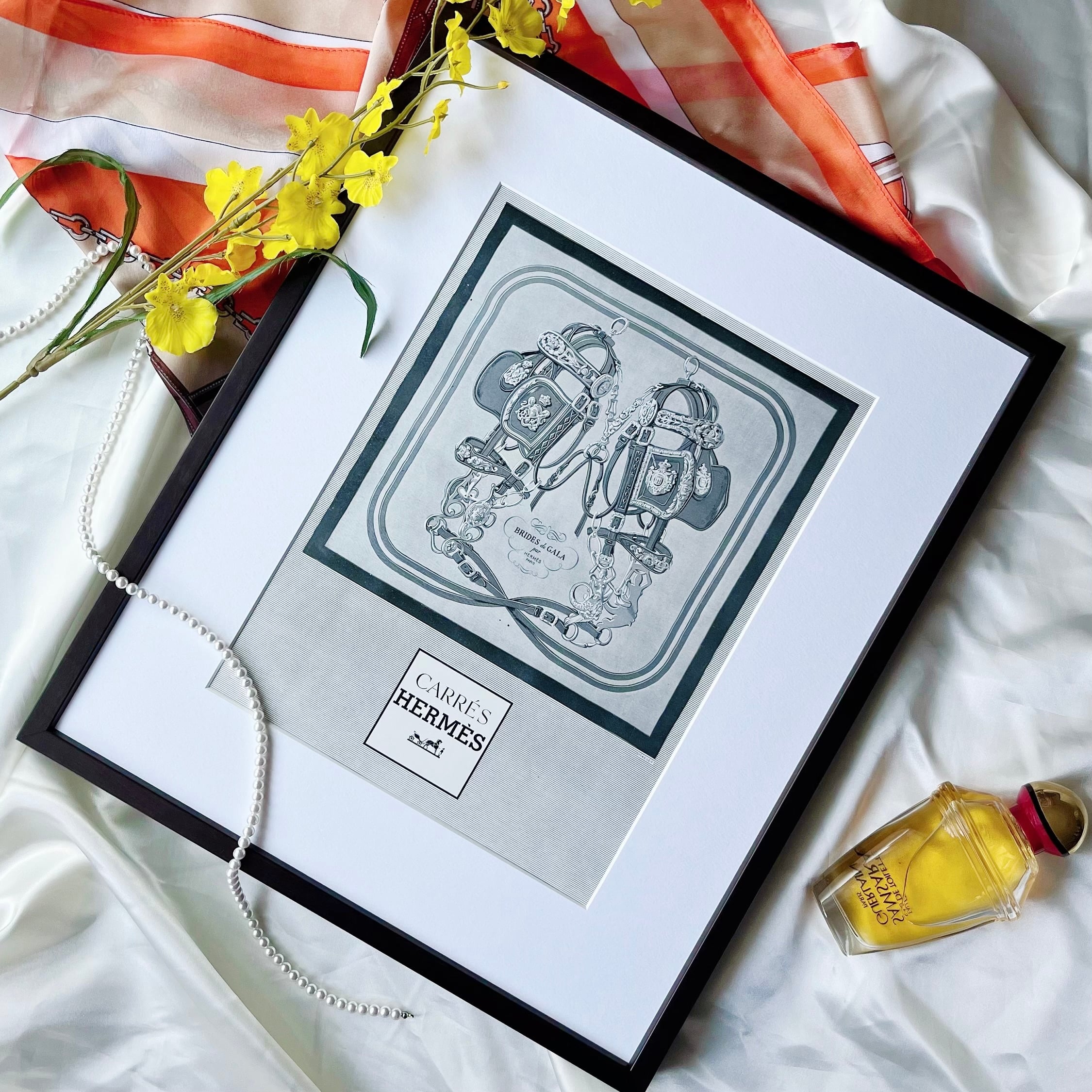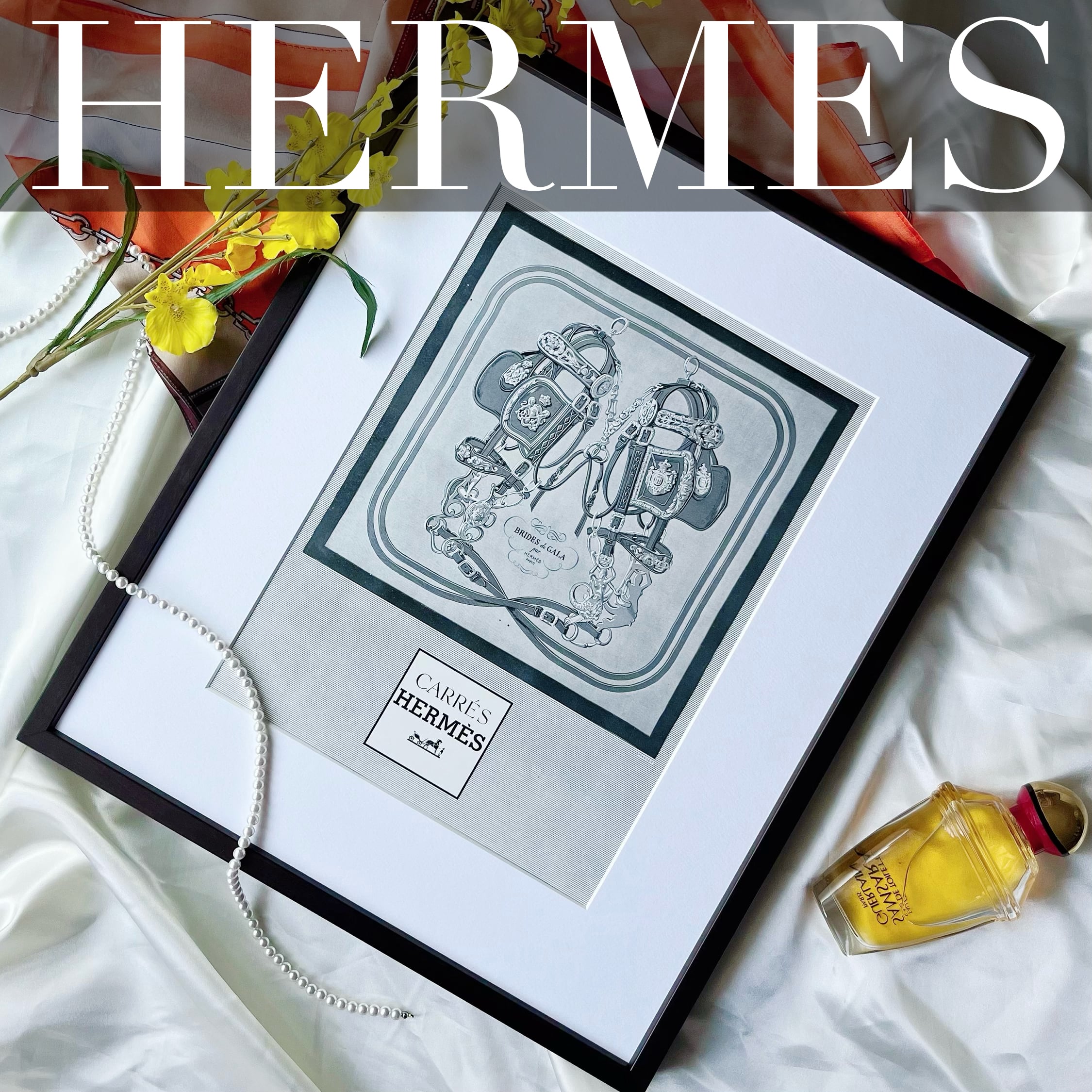 <1958 広告> HERMES エルメス カレ ポスター ヴィンテージ アートポスター フレーム付き インテリア モダン おしゃれ かわいい 壁掛け ポップ レトロ モノクロ モノトーン スカーフ 額縁