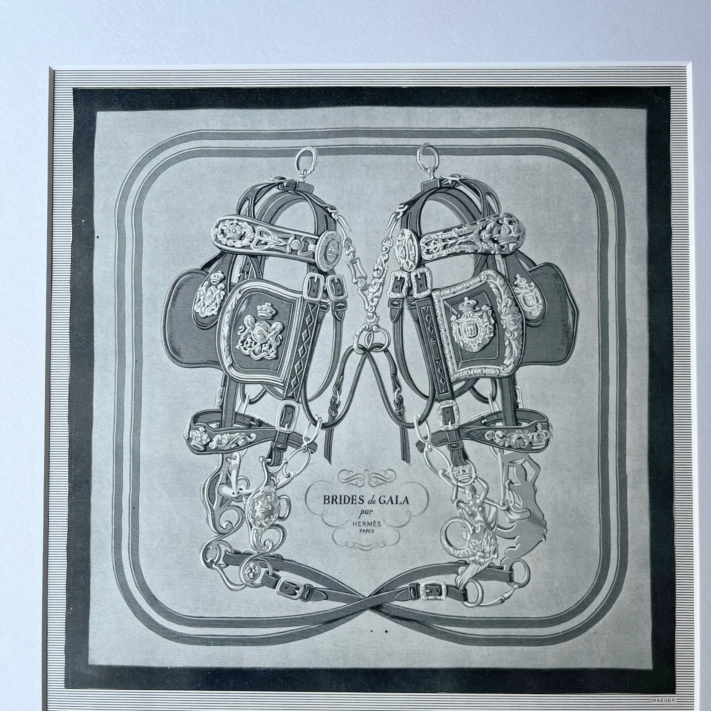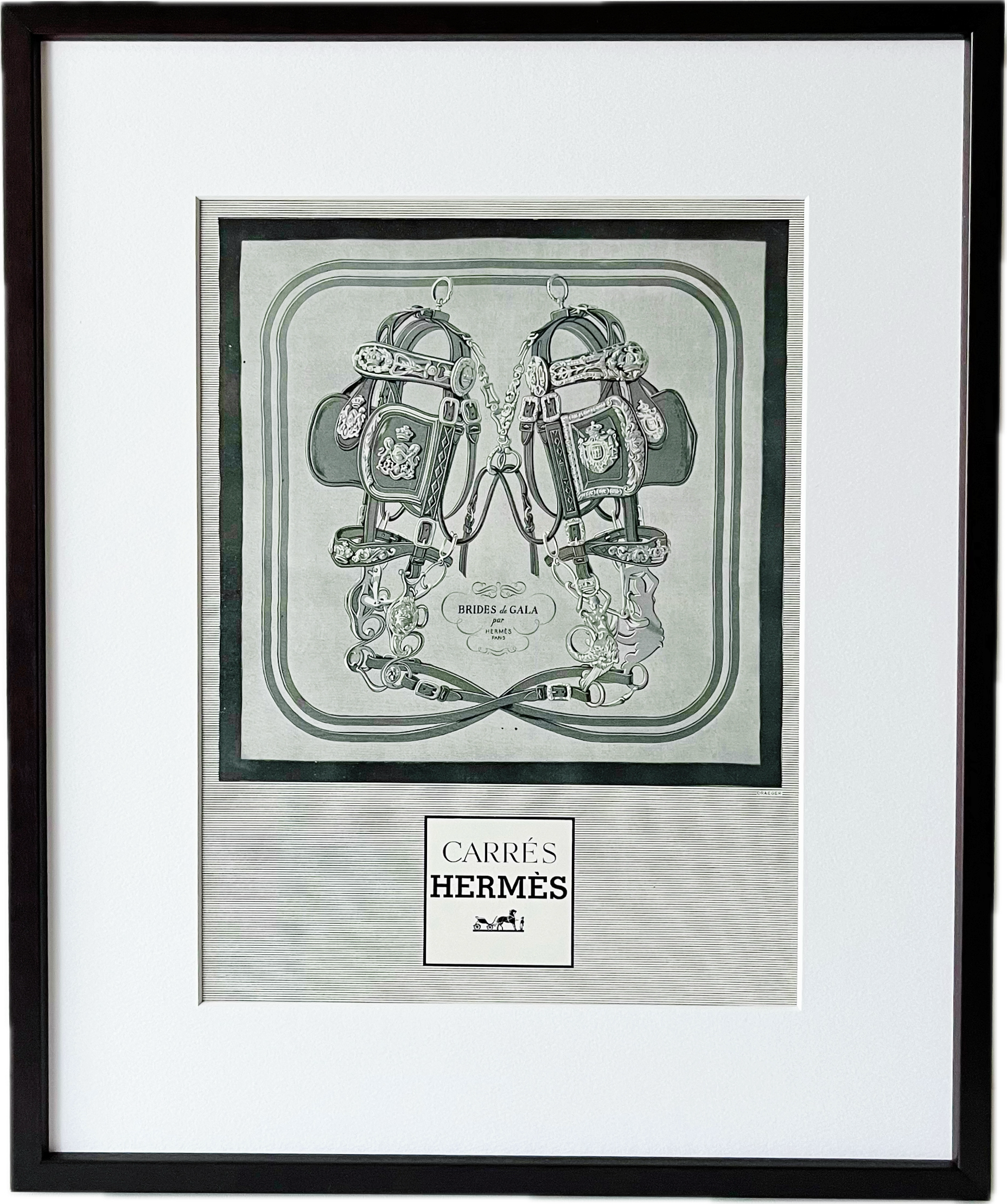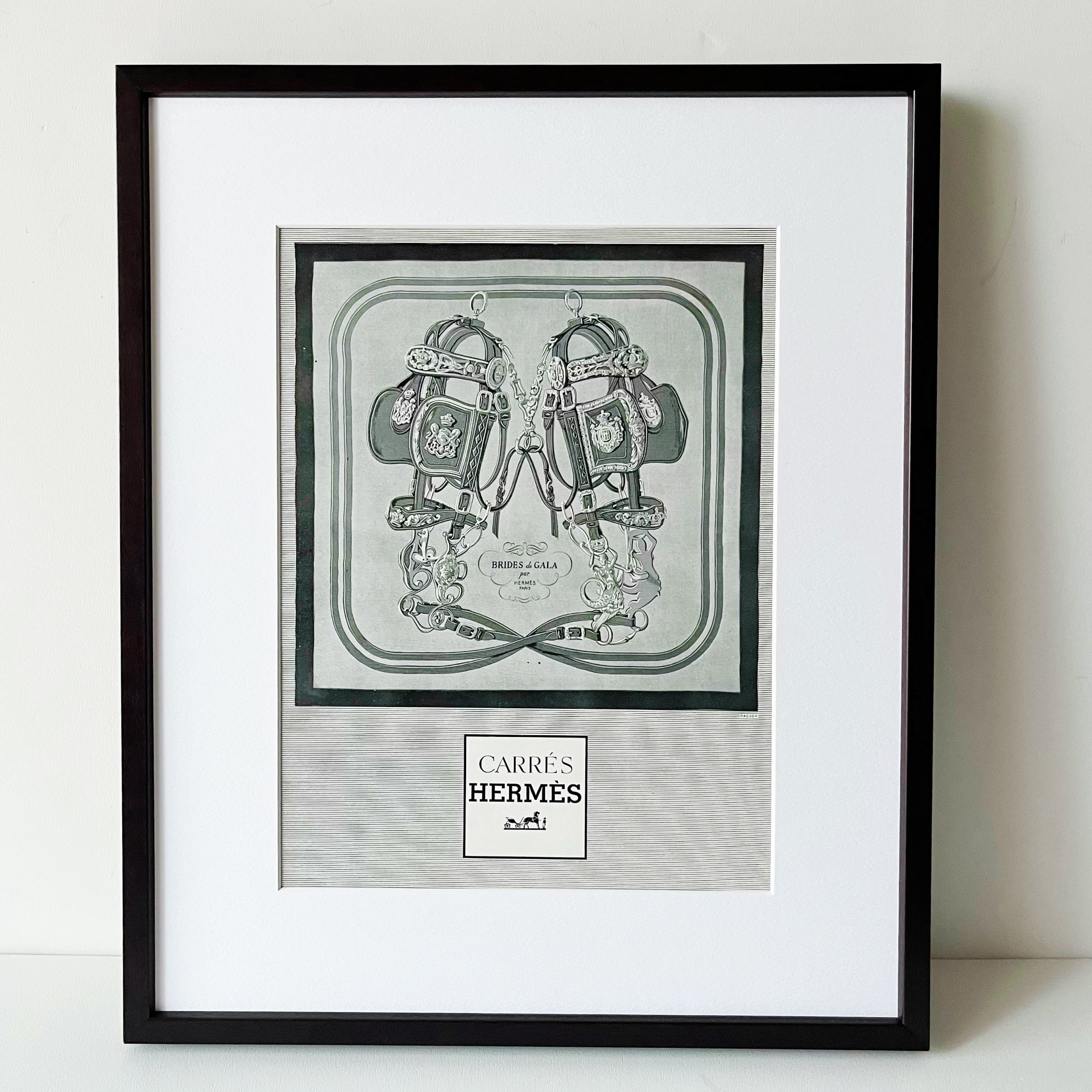 <1958 広告> HERMES エルメス カレ ポスター ヴィンテージ アートポスター フレーム付き インテリア モダン おしゃれ かわいい 壁掛け ポップ レトロ モノクロ モノトーン スカーフ 額縁