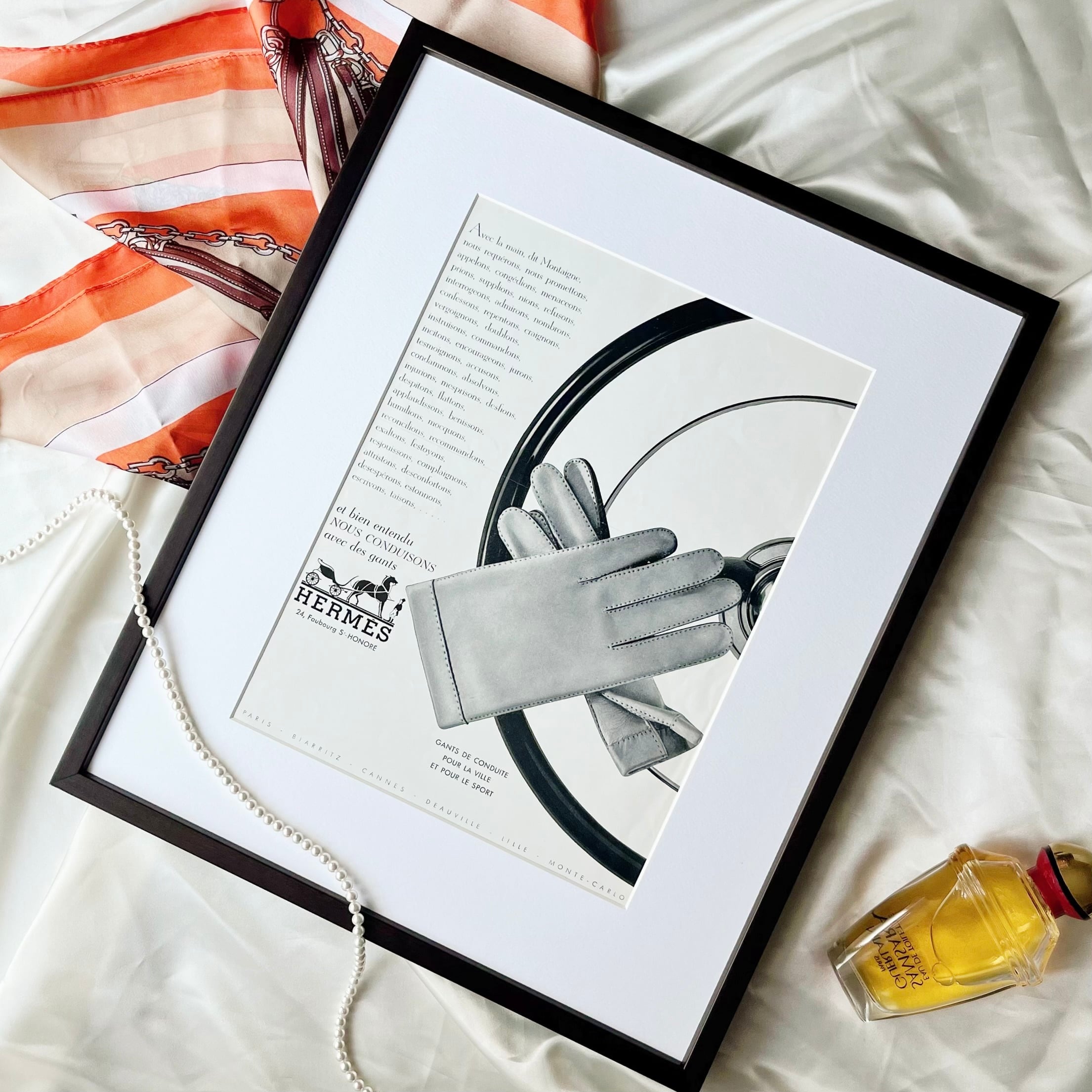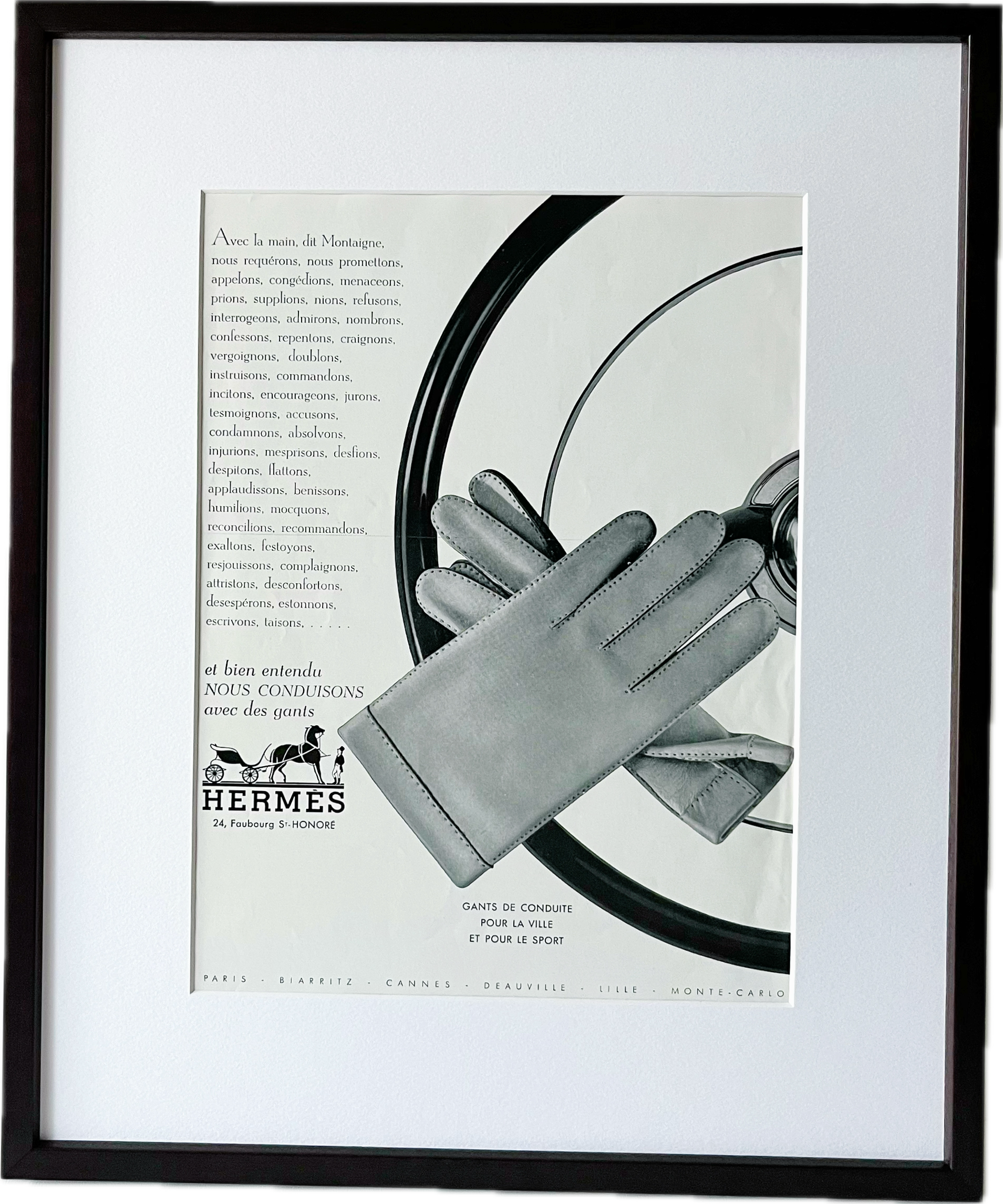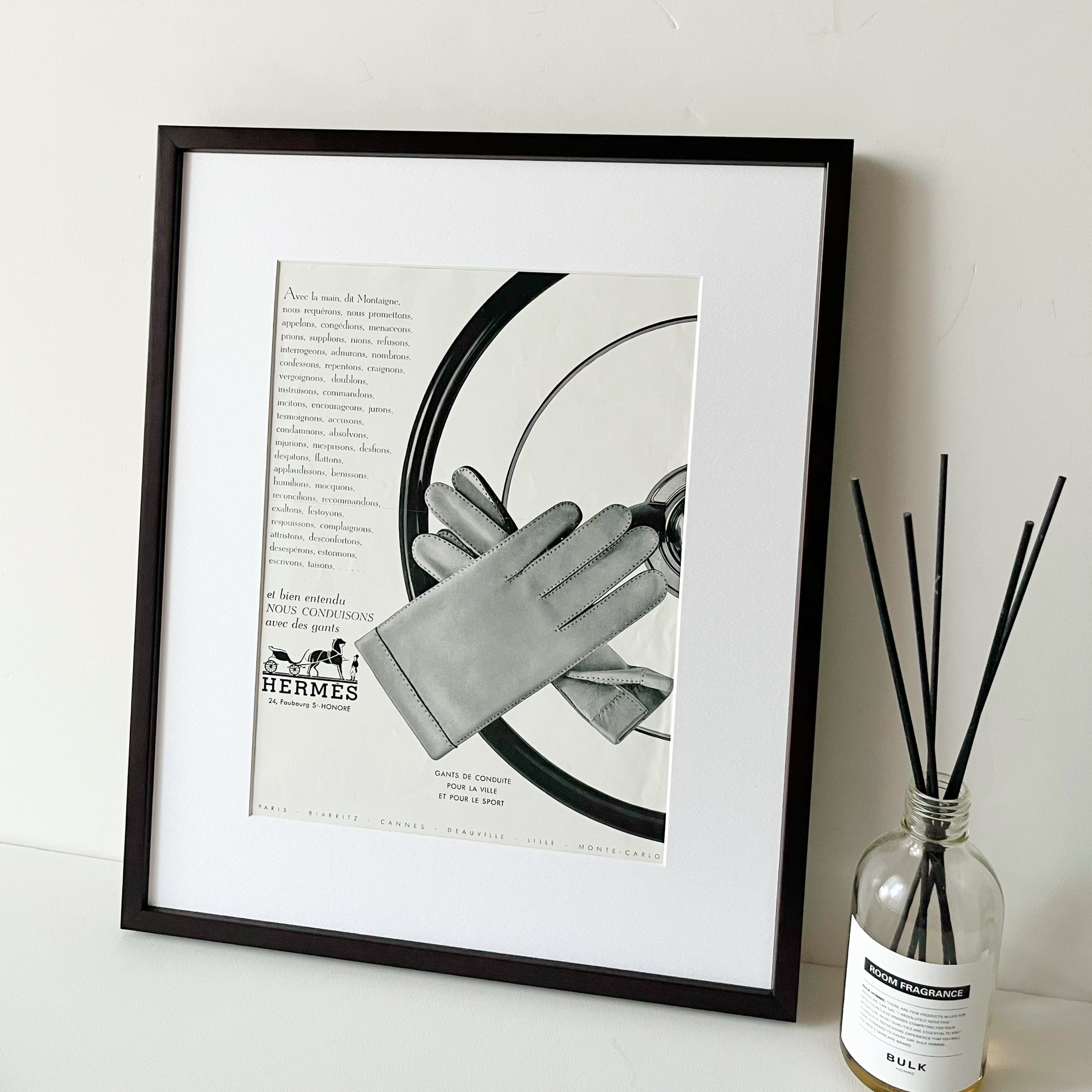<1956 広告> HERMES エルメス グローブ ポスター ヴィンテージ アートポスター 額縁 フレーム付き インテリア モダン おしゃれ かわいい 壁掛け ポップ レトロ モノクロ モノトーン | Belle_ame ヴィンテージアートポスター