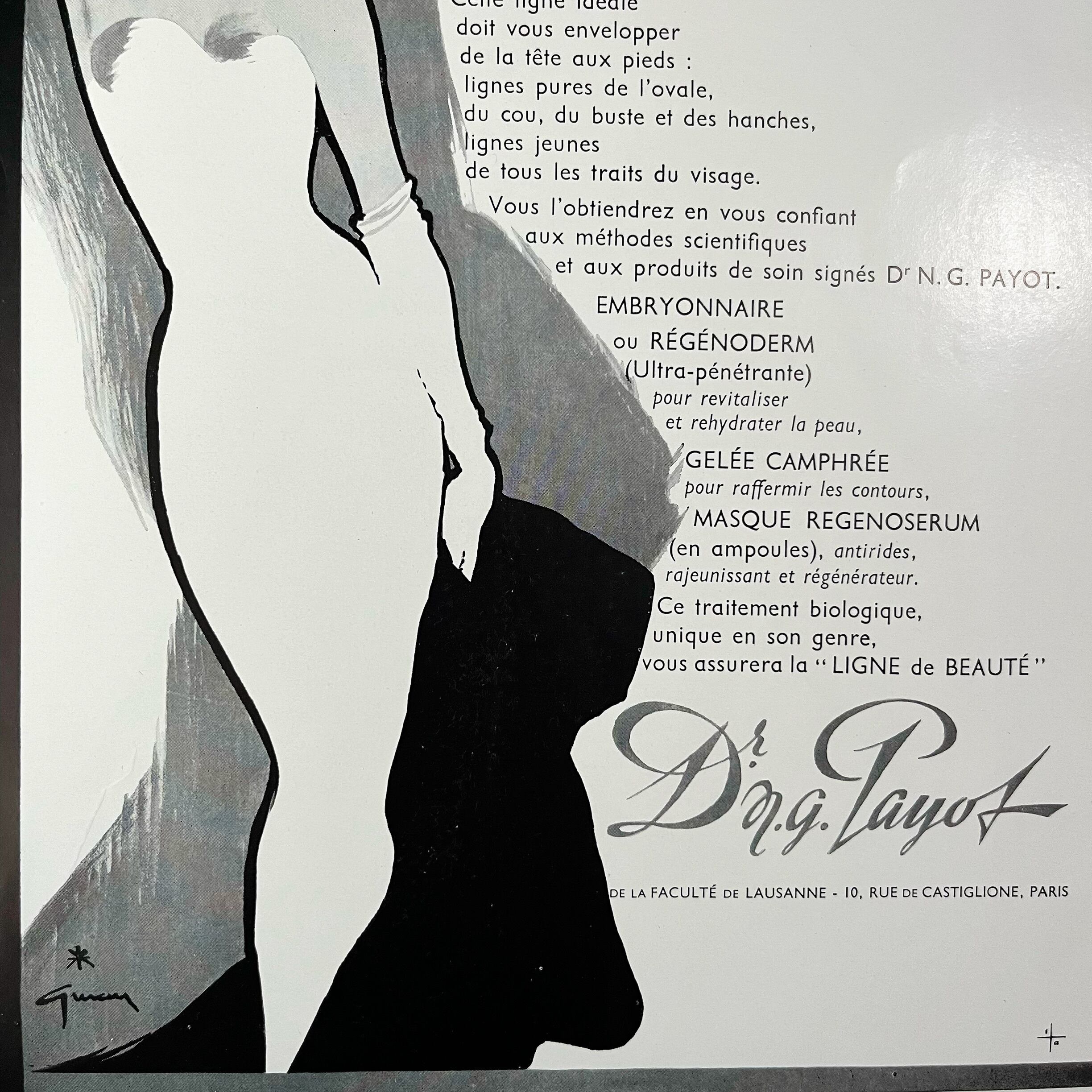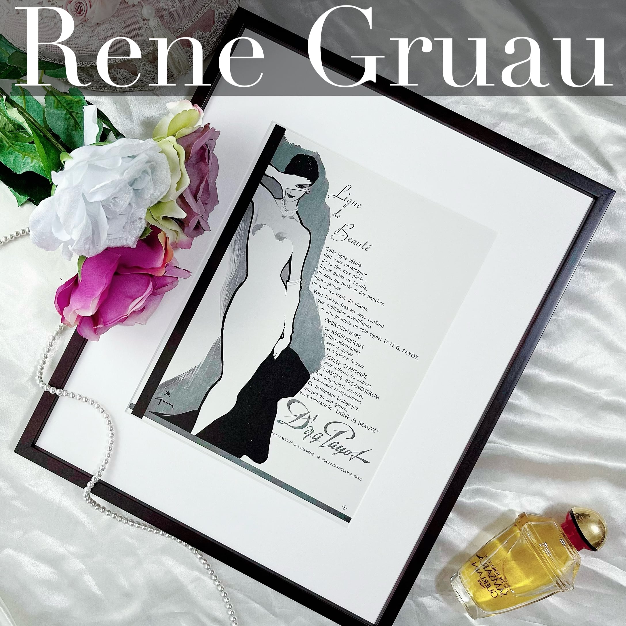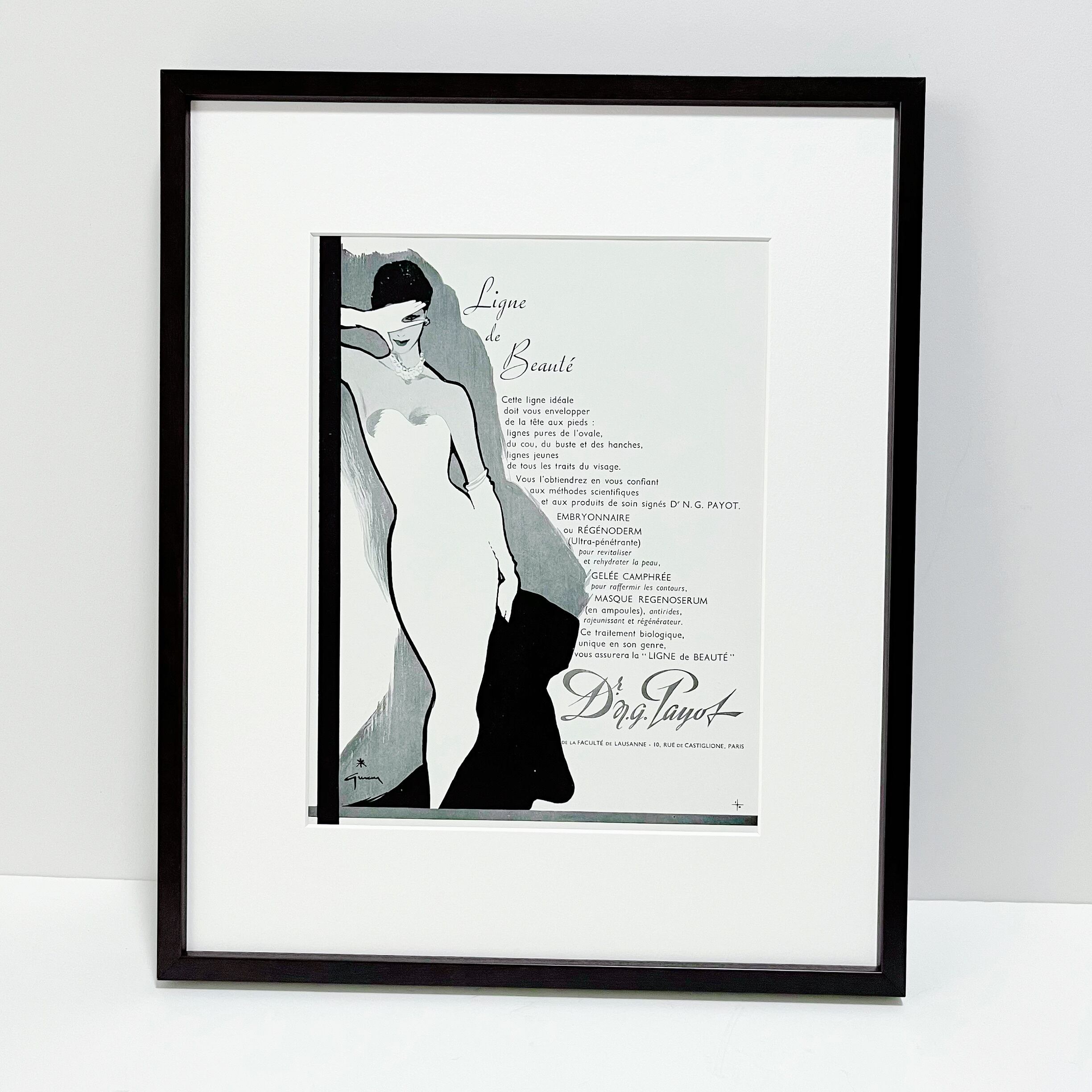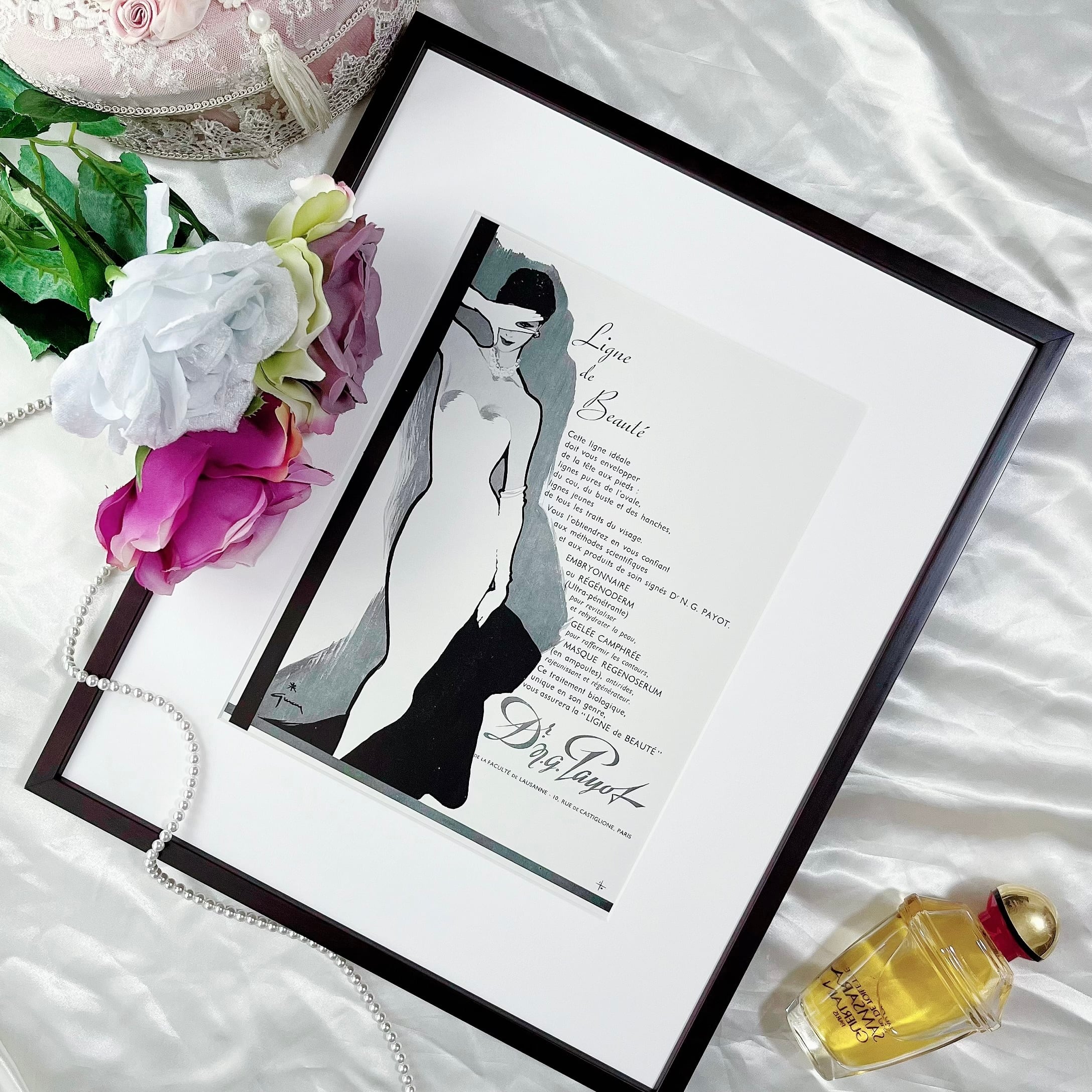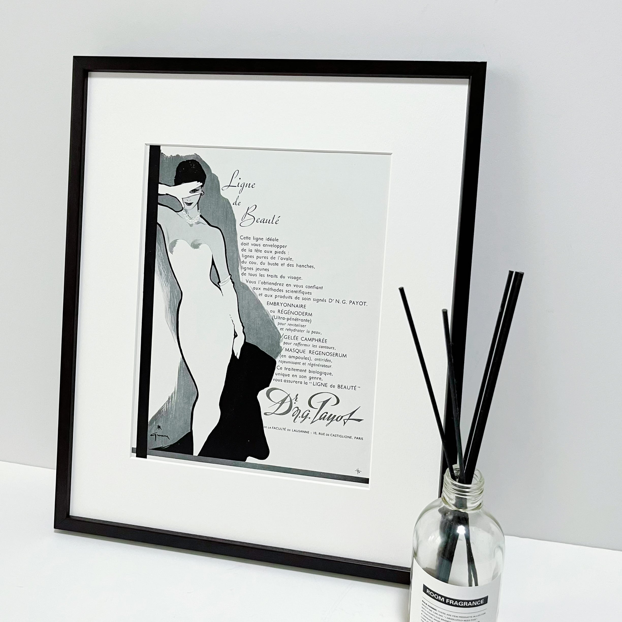 <1955 広告>Rene Gruau グリュオ Payot ポスター ヴィンテージ アートポスター フレーム付き インテリア モダン おしゃれ かわいい 壁掛け ピンク ポップ レトロ モノトーン モノクロ 女性 額縁