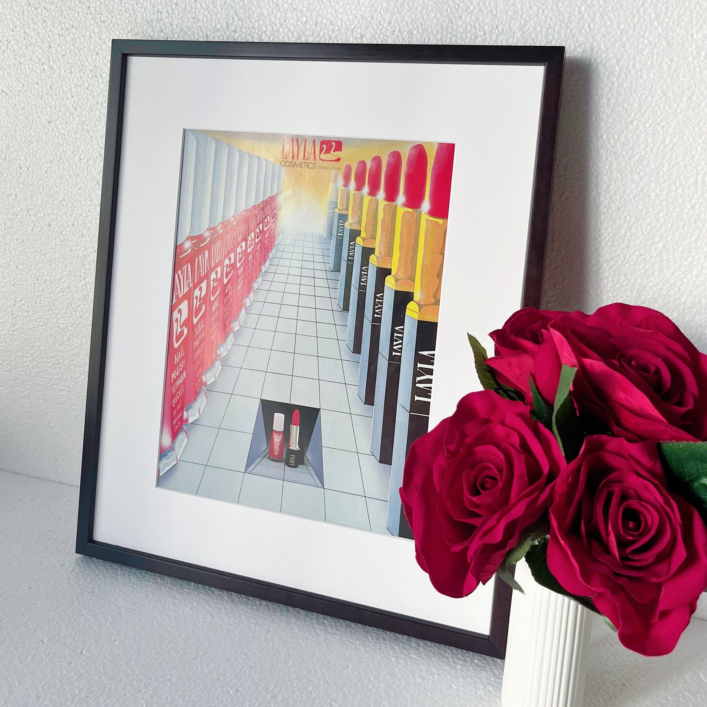 <1982 広告>LAYLA ポスター ヴィンテージ アートポスター フレーム付き 額縁 インテリア モダン おしゃれ かわいい 壁掛け ポップ レトロ 口紅 | Belle_ame ヴィンテージアートポスター