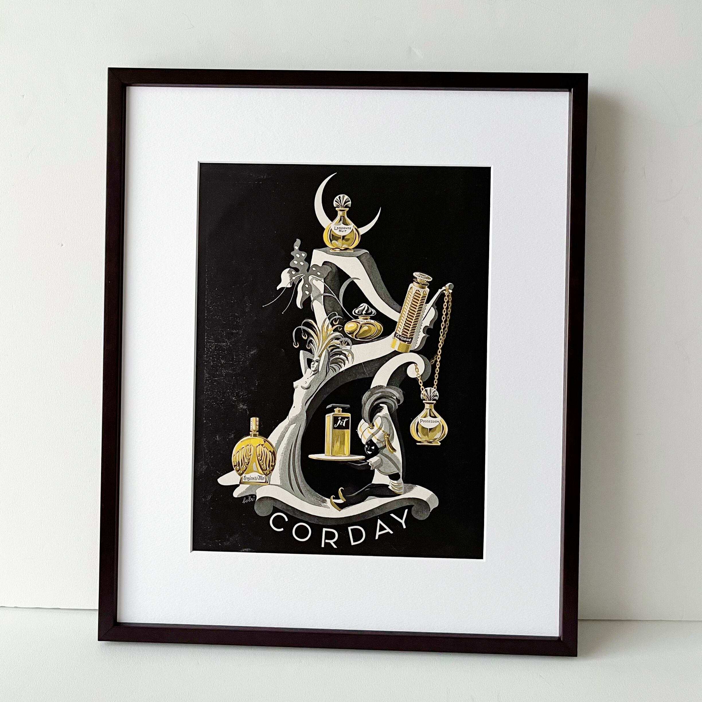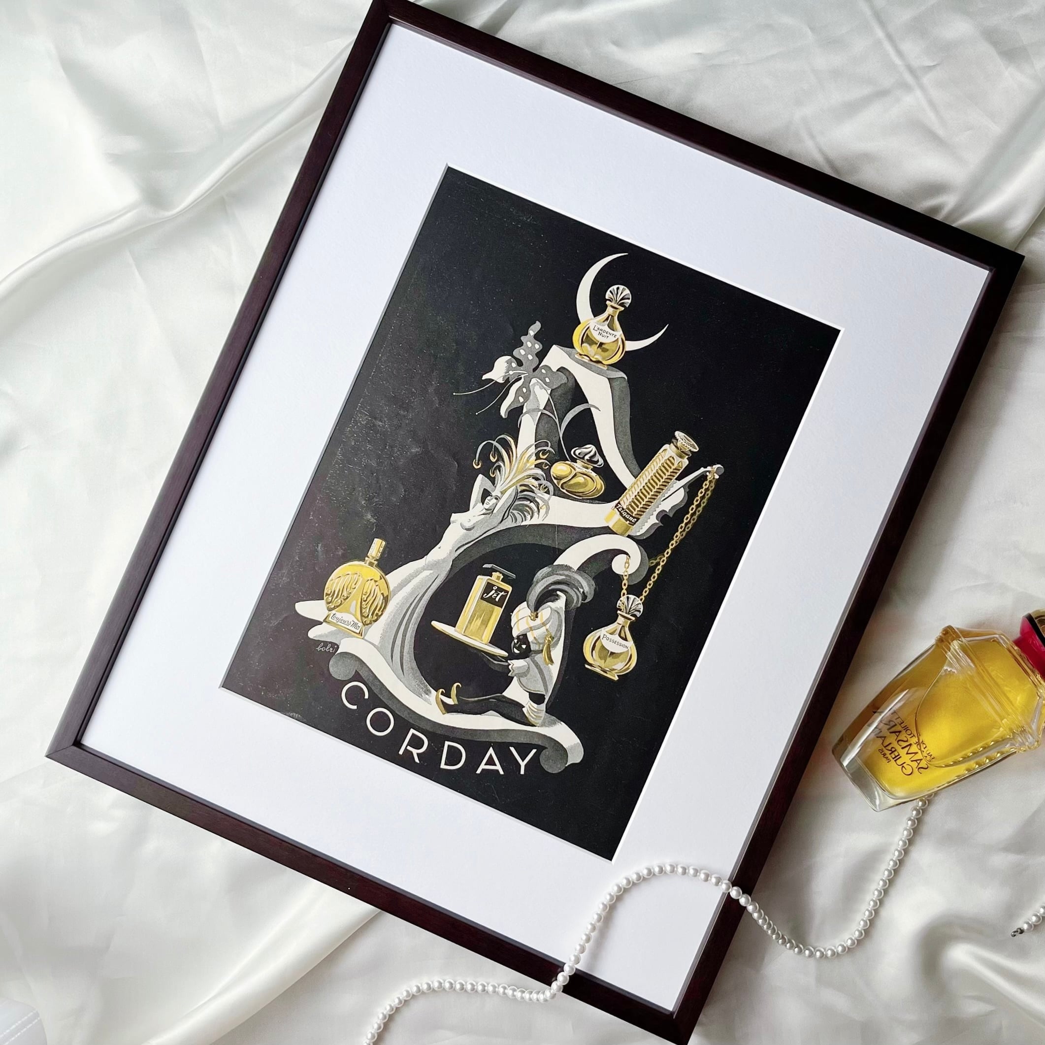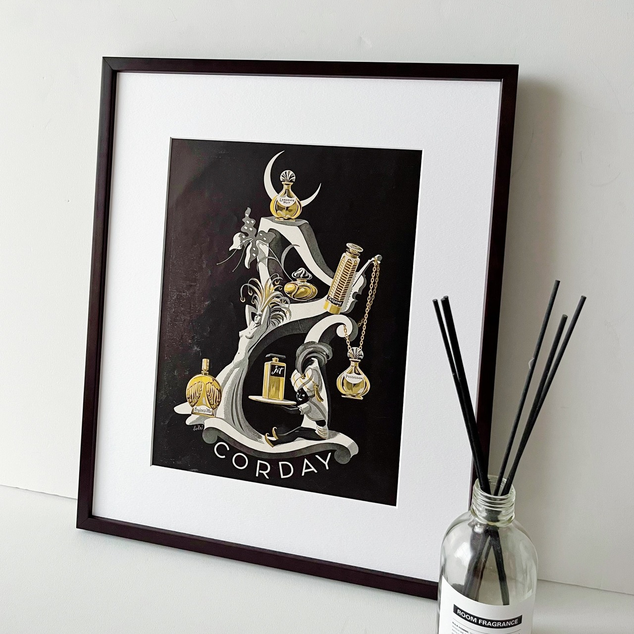 <1942 広告>Corday ポスター 香水 ヴィンテージ アートポスター フレーム付き 額縁 インテリア モダン おしゃれ かわいい 壁掛け ポップ レトロ 青 モノクロ モノトーン | Belle_ame ヴィンテージアートポスター