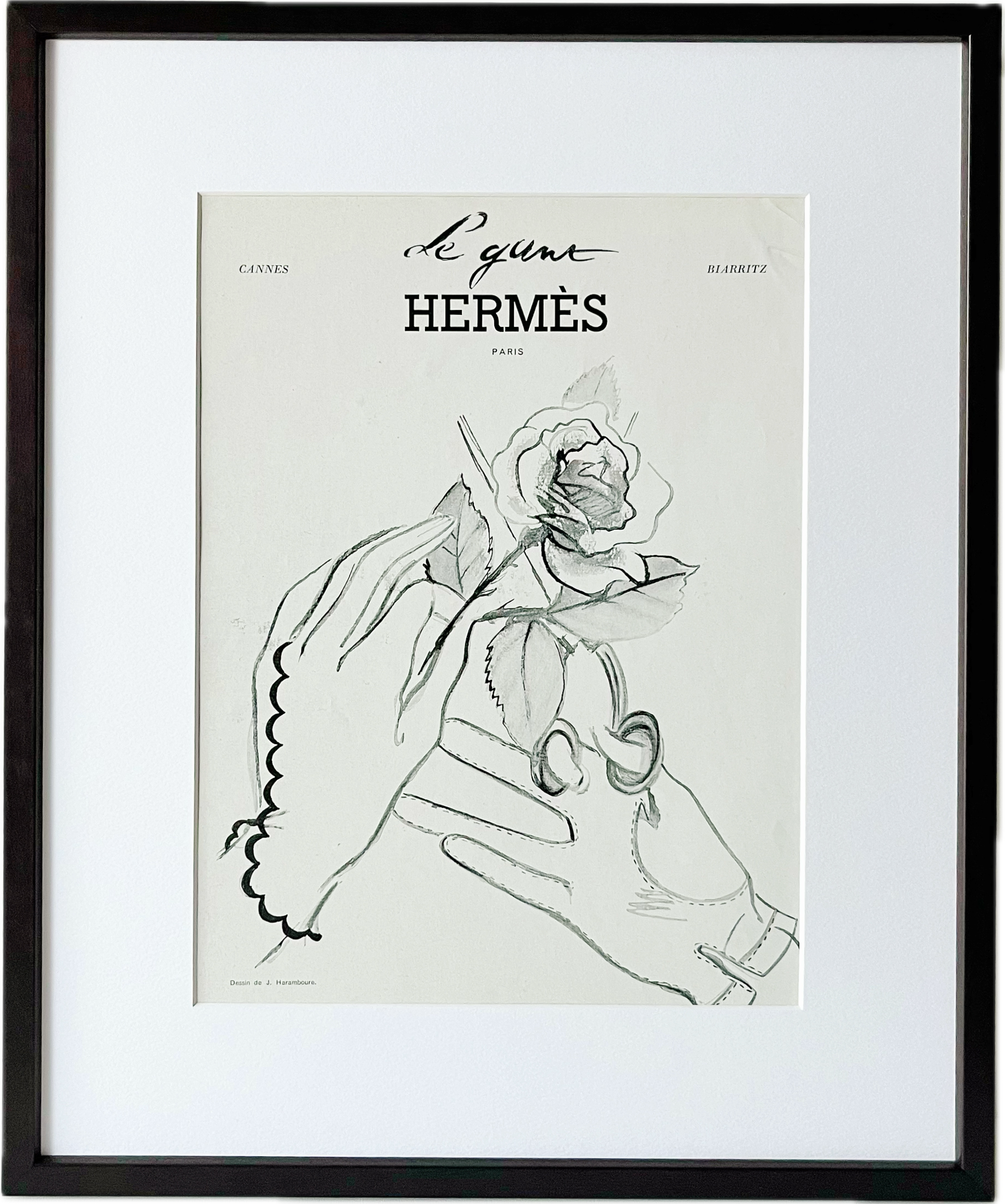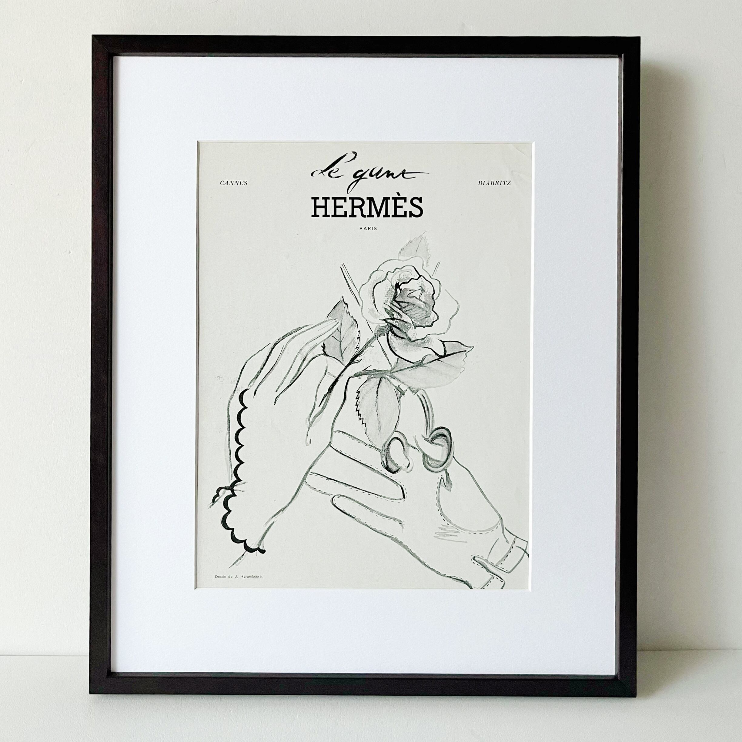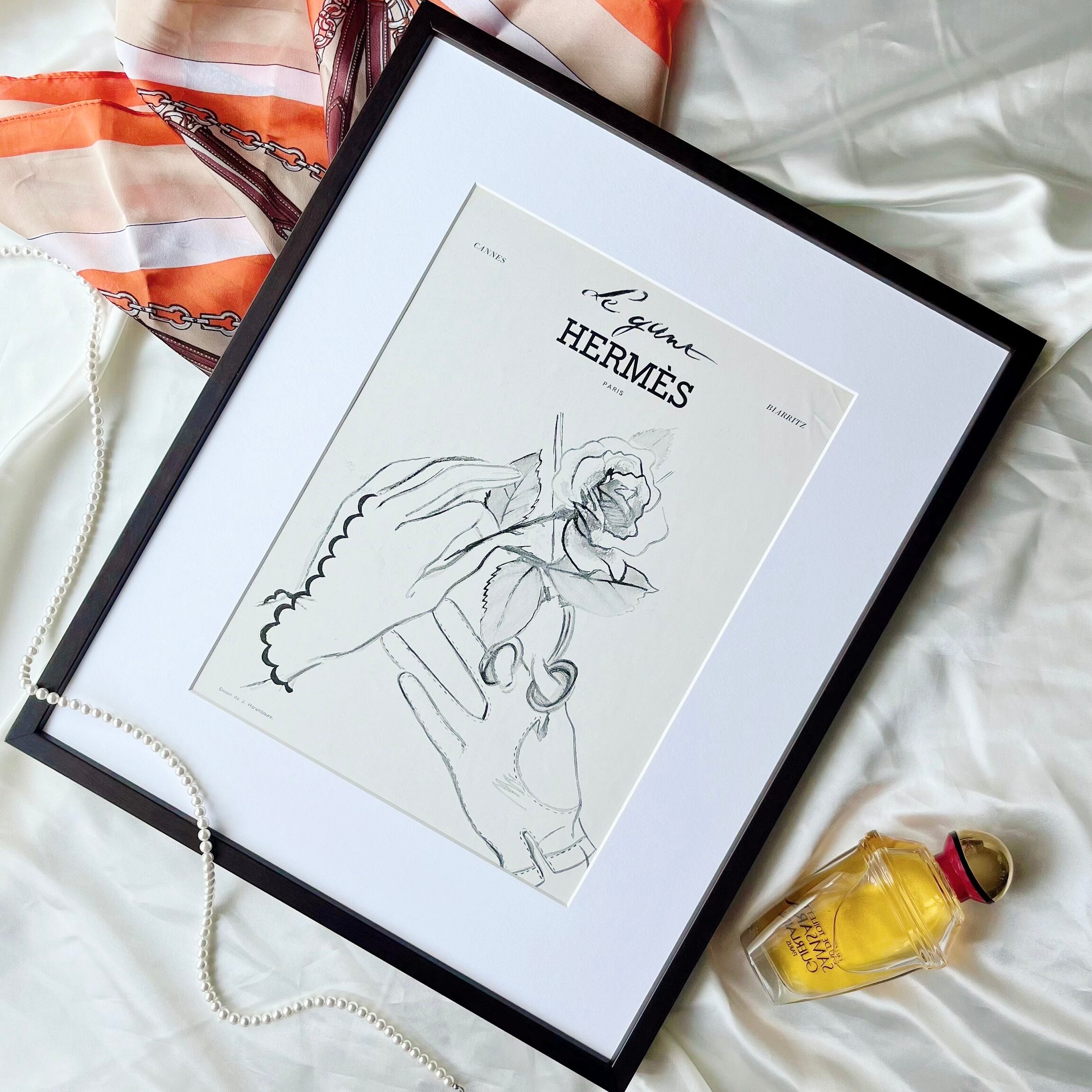 <超お得!!1941 広告>HERMES エルメス ポスター ヴィンテージ アートポスター フレーム付き 額縁 インテリア モダン おしゃれ かわいい 壁掛け ポップ レトロ モノクロ モノトーン 花 | Belle_ame ヴィンテージアートポスター
