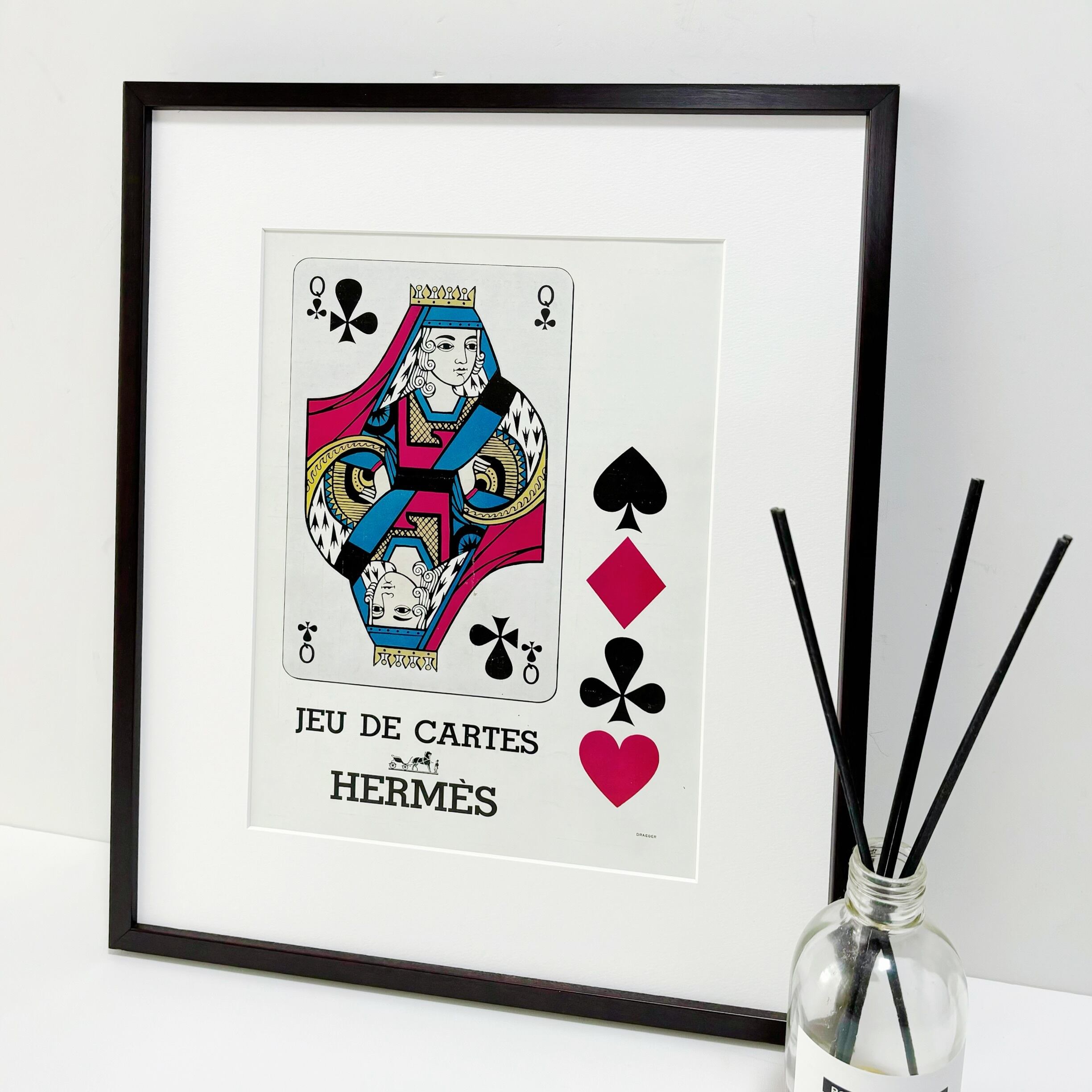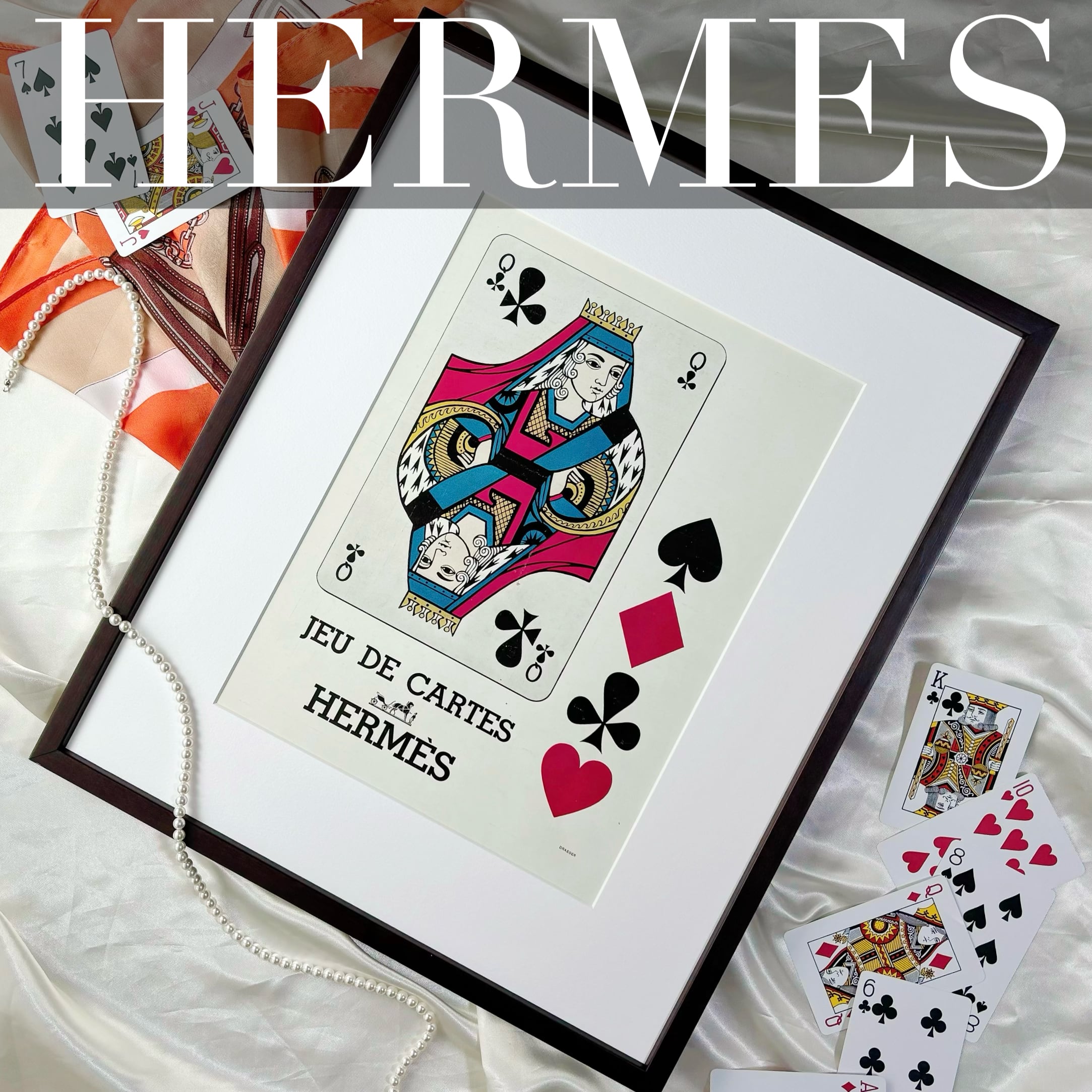 <1962 広告>HERMES エルメス ポスター ヴィンテージ アートポスター フレーム付き 額縁 インテリア モダン おしゃれ かわいい 壁掛け ポップ レトロ トランプ柄 | Belle_ame ヴィンテージアートポスター