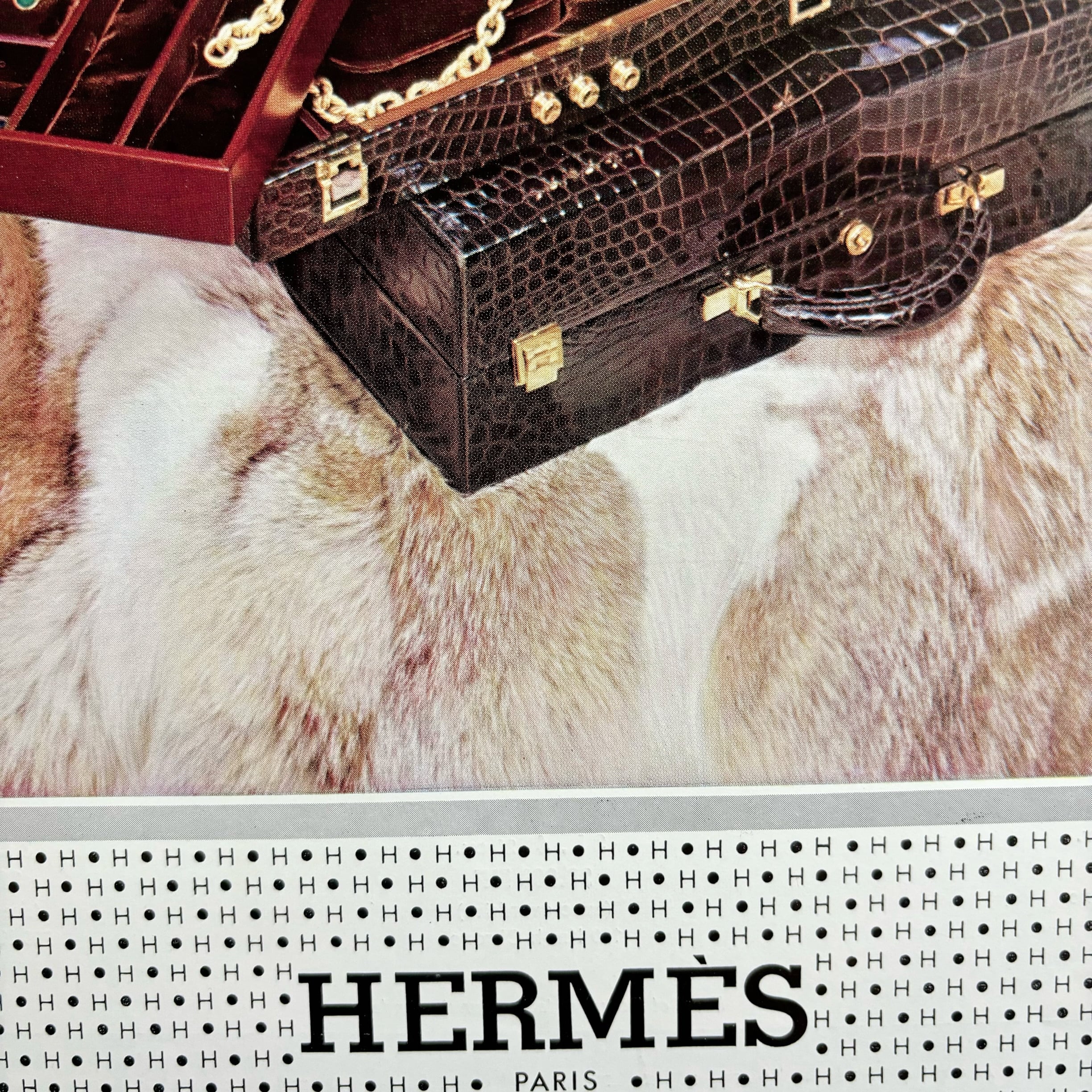 ゴージャスな毛皮の上に、ブランドのジュエリーボックスが優雅に配されたデザインは、まさにエルメスらしい上品さを醸し出しています。